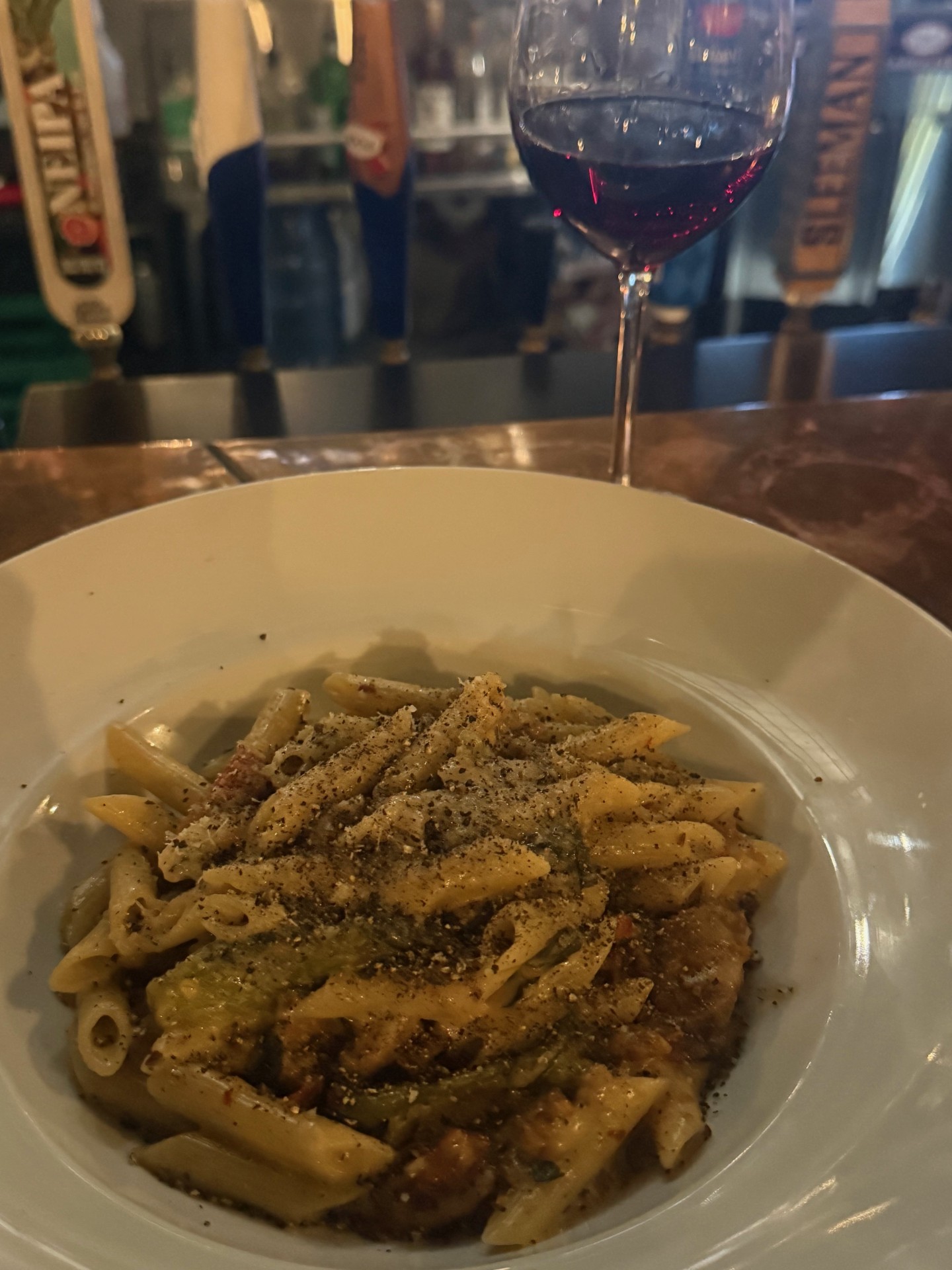 My last stop of the day was at Birra & Basta, where I had Penne Pasta with sausage and asparagus, a glass of wine and an Irish coffee for dinner. I highly recommend coming here!