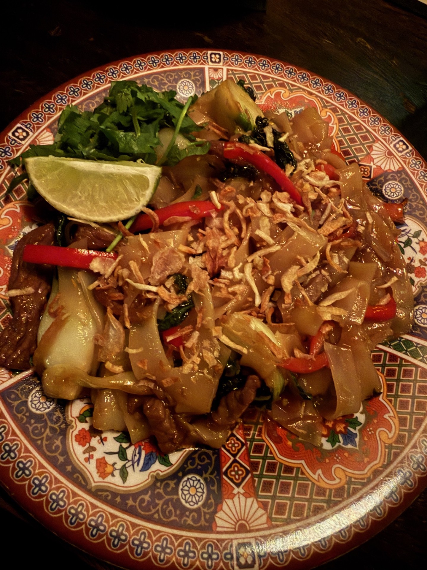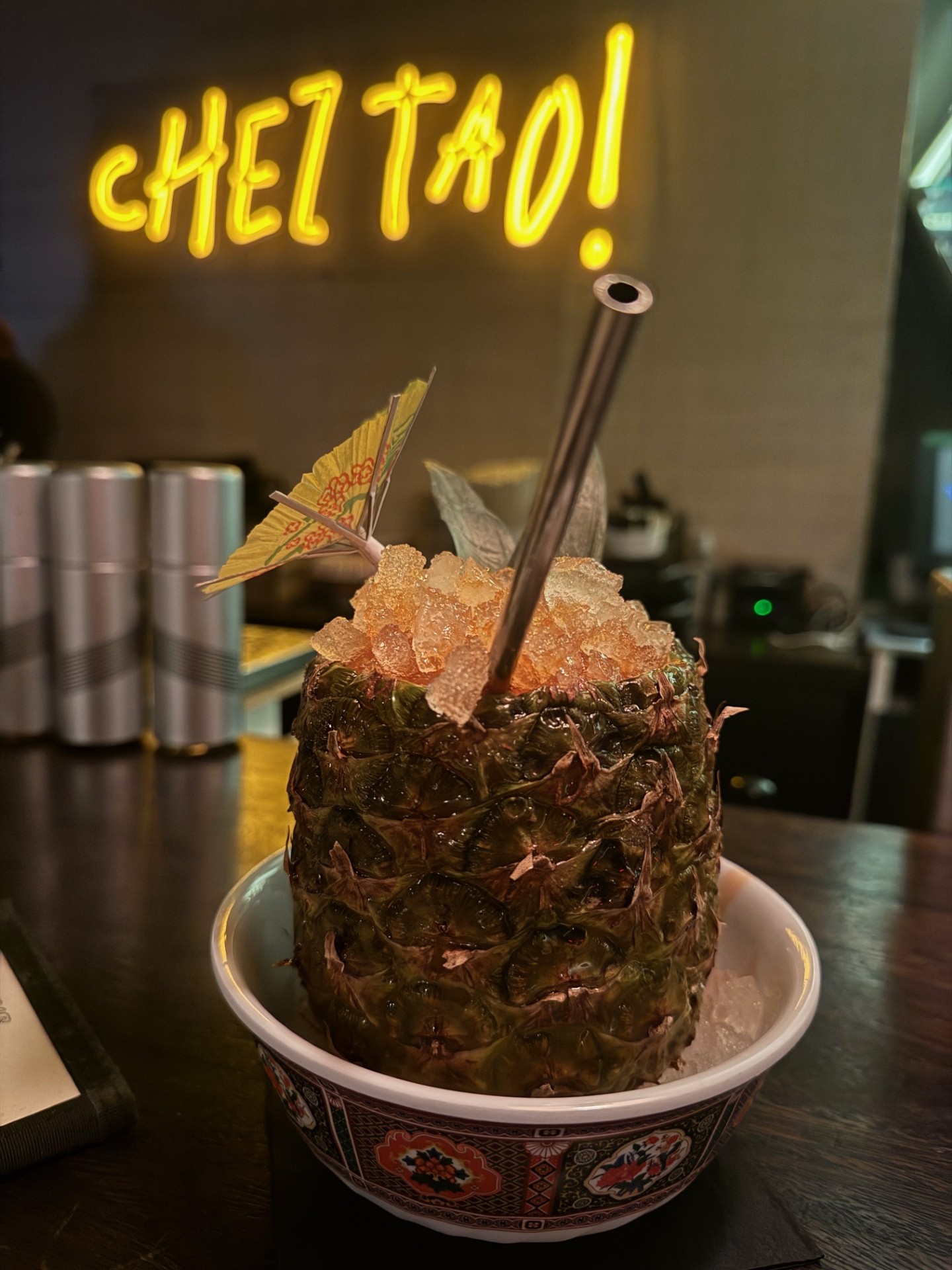 I ended up going to Chez Tao that featured Southeast Asian Food. I ordered a Rum Tiki Cocktail in a pineapple and some Pad See Ew. I haven’t had a Tiki drink in such a long time and it was pretty strong, LOL!